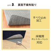 表地は保温性のあるフランネル生地で,ずっと触っていたくなるようなやわらかな肌触りです。中材にアルミシート・ポリエチレンシートを使用することで蓄熱・断熱機能があるため,冬の寒い日でも床からの底冷えを軽減します。無地でカラーバリエーションも豊富なため,どのようなお部屋にも合います。