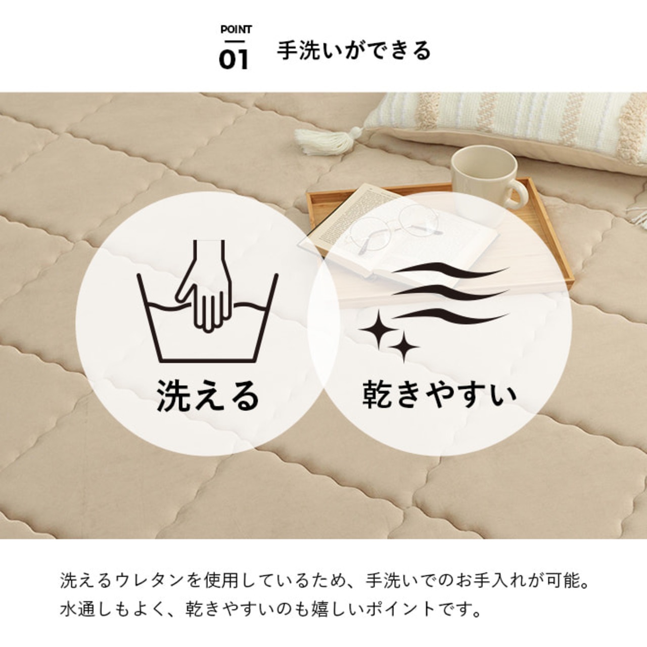 床暖房・ホットカーペット対応。こたつの敷布団としてもおすすめ。オールシーズンお使いいただけます。