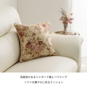 エレガントな柄をジャガード織りで織り上げた高級感のあるセアテクッションです。 国内綿入れ加工で安心安全。ふかふか感をお楽しみください。