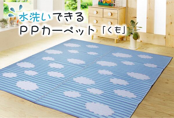 ポリプロピレン素材を細いパイプ状にして織り込んだ敷物です。強度が高くしっかりとしています。汚れても水洗いができるので、いつでも清潔にお使い頂けます。お子様の部屋に、アウトドアに、ペットのいるご家庭に最適な万能カーペットです。