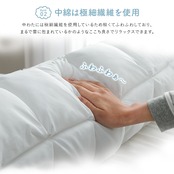 側生地は立体キルト構造でもこもこを表現、更に中わたには極細繊維を使用しているため軽くてふわふわしており、身体に優しくフィットし、まるで雲に包まれているかのようなここち良さでリラックスできます。