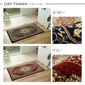 トルコ製の最高級ウィルトン織りマットです。ウィルトン織りは、非常に耐久性の高いカーペットです。家の中でも靴を履いて生活するヨーロッパで、土足で扱うことを前提として作られておりますので、長時間踏みつけてもヘタリにくく、弾力性もあり長くご使用頂けます。また、高密度にパイルを織り上げることで、耐久性プラス繊細な柄を表現できるのも特徴です。本商品の『繊維の密度を表すノット数』は75万ノットの最高級クラスです。ぎっしりとパイルが詰まっていますので弾力性に富み踏み心地もしっかりとしています。また、パイル数を多くすることにより、より繊細でより色鮮やかなメダリオン柄を表現しました。プリントものには出せない高級感・重厚感のある繊細な柄をお楽しみ下さい。本商品のパイル部分にはポリプロピレン素材を使用しております。ポリプロピレンはヘタリにくく、耐久性に優れ、繊維の中でも軽い素材です。また、汚れが付着しにくく、遊び毛や毛玉が非常に出にくいという特徴もあります。本商品にはヒートセット加工を施しております。ヒートセット加工をすることで、柔らかく、なめらかなタッチ感に仕上げました。
