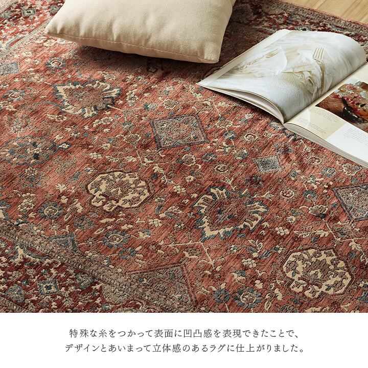 特殊な糸をつかって表面に凹凸感を表現できたことで、デザインとあいまって立体感のあるラグに仕上がりました。